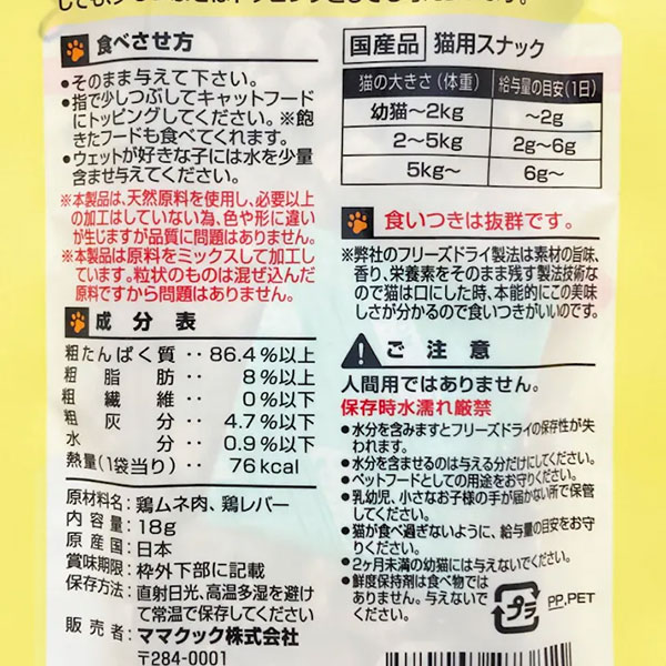 ママクック フリーズドライのムネ肉レバーミックス 猫用
