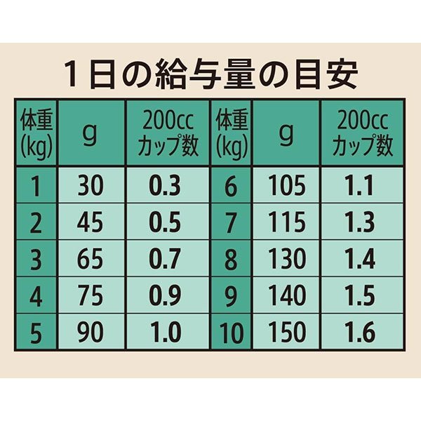 本品は、ペットフード公正取引協議会の定める分析試験の結果、総合栄養食の基準を満たすことが証明されています。