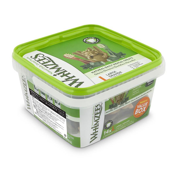 形の異なる製品が1つのボックスに入っているお得なボックス。いつも同じ形状のハミガキトリーツを与えると賢いワンちゃんは噛みやすい方の歯だけで噛んでしまい、その他の歯はケアされない場合があります。ウィムズィーズでは、形の違うハミガキトリーツをローテーションで与える事をお薦めしております。