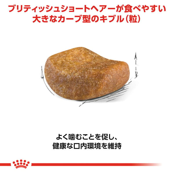 ■ブリティッシュ ショートヘアーのために特別に設計された大きなカーブ型のキブル(粒)