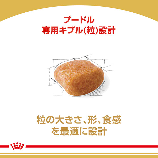 プードルのあごでも簡単に捉えられて、しっかりと噛めるように設計された、最適な大きさ、形、食感のキブル(粒)です。