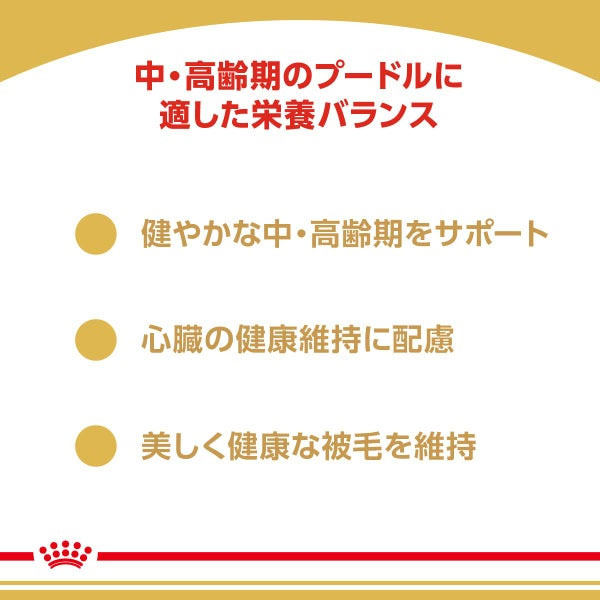 <プードル 中・高齢犬用>は、中・高齢期のプードルの心臓の健康維持に必要なEPA、DHA、タウリン、L-カルニチン、複数の抗酸化成分などの栄養素が配合されています。