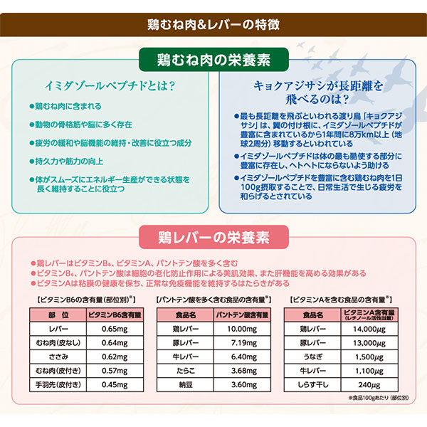 鶏むね肉、鶏レバー、ニンジン、キャベツ、L-カル二チン、精製魚油(DHA・EPA源)、増粘多糖類