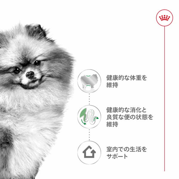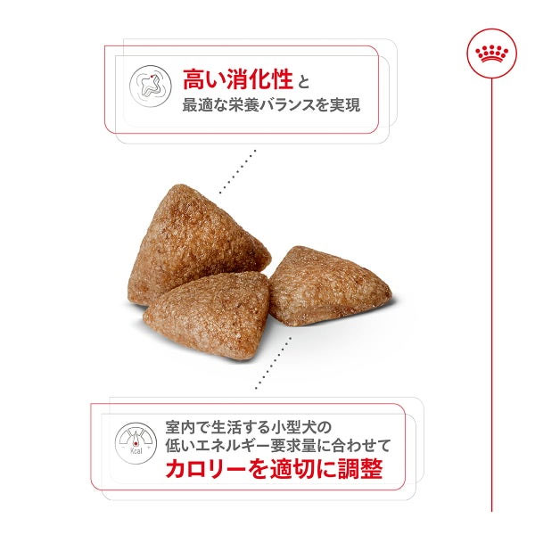 室内で生活する小型犬の、低いエネルギー要求量に合わせたカロリー調整が、理想的な体重の維持をサポートします。