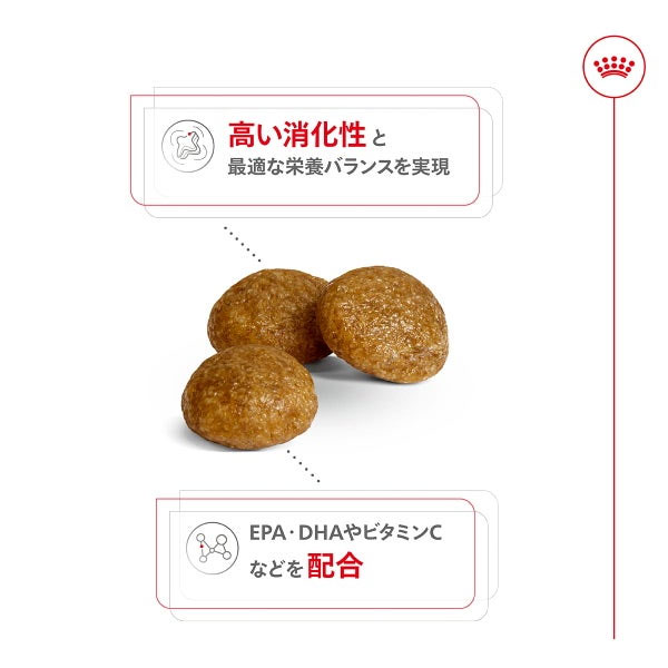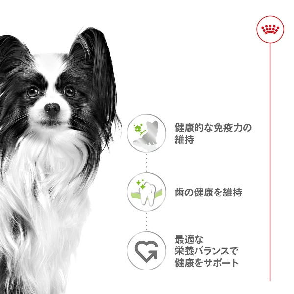 体重4kg未満の超小型犬の特に小さな顎に合わせてキブル(粒)のサイズを最適に調整。さらに独自の製法で嗜好性を高めることにより食欲にムラがある超小型犬の食欲を刺激します。