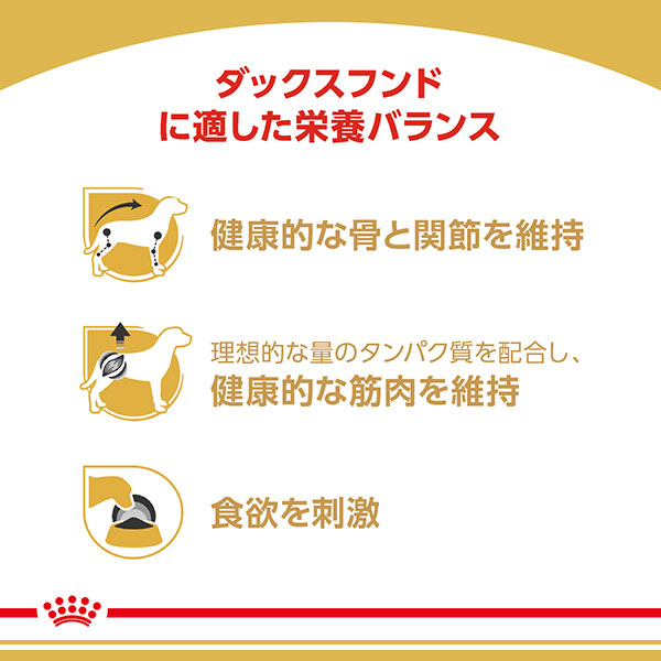 ダックスフンドのために開発されたローフタイプの食感によって、ダックスフンドの食欲を満たします。