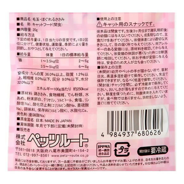 ペッツルート (Petz Route) 毛玉すっきり ほぐれるささみ 20g