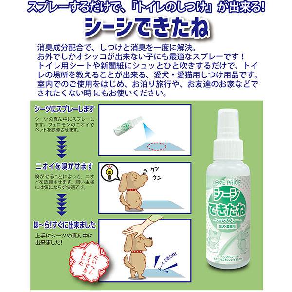 トイレしてほしいところにシュッとかけるだけの簡単なしつけ用スプレーです。
