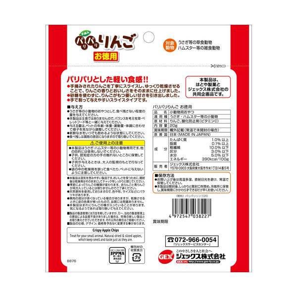 ●うさぎ等の小動物のおやつとして、食べ残さない程度の量を与えてください。●本製品は主食ではありませんので、バランスを考え牧草・ペレットフード等と一緒に与えてください。●与える量は、ペットの年齢・体重・運動量・体調に合わせて様子を見ながら調整してください。●新鮮な水をいつでも飲めるような状態にしてください。●食べ残しは腐敗の原因になりますので取り除いてください。