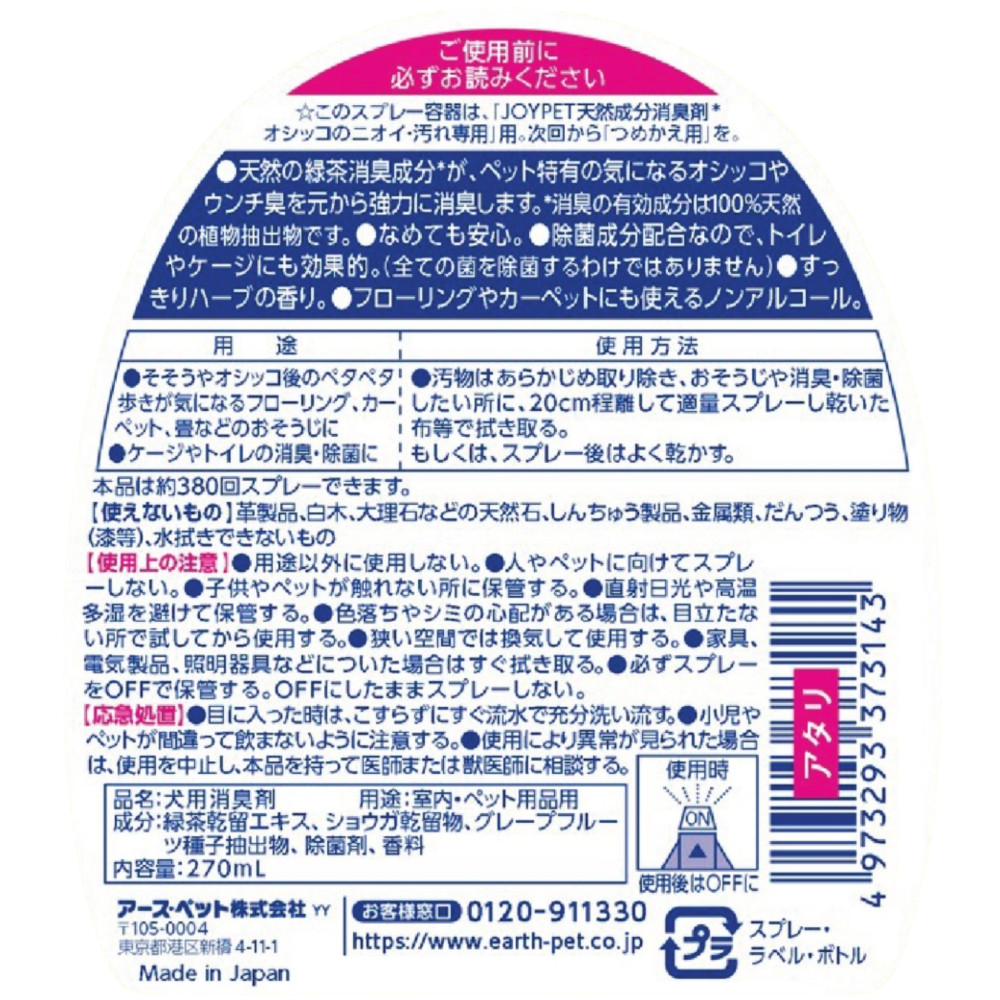 ジョイペット 天然成分消臭剤 オシッコのニオイ・汚れ専用 270mL