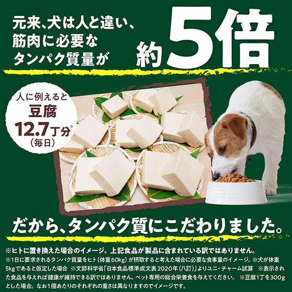 【成犬用の特長①】高タンパク・高消化性の栄養設計で、筋肉の健康を維持しながら、太りにくく健康な身体を維持できることを証明(特許取得)。