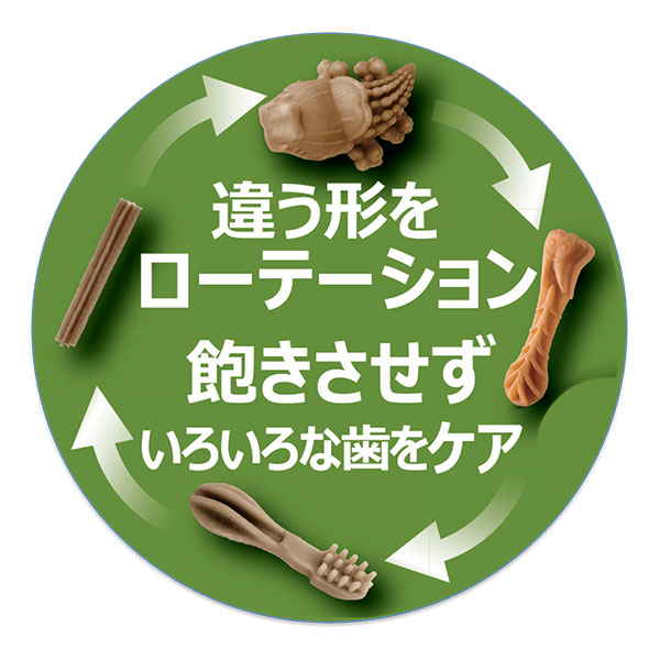 形の異なる製品が1つのボックスに入っているお得なボックス。いつも同じ形状のハミガキトリーツを与えると賢いワンちゃんは噛みやすい方の歯だけで噛んでしまい、その他の歯はケアされない場合があります。ウィムズィーズでは、形の違うハミガキトリーツをローテーションで与える事をお薦めしております。