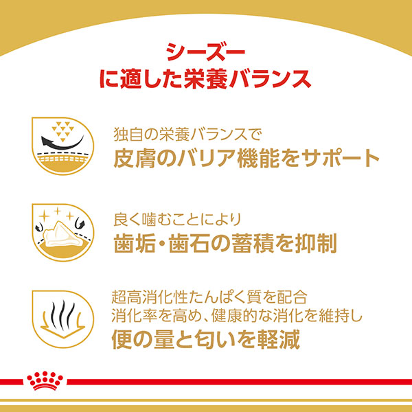 シーズーの健康な皮膚と美しい被毛を維持するためには特別な配慮が必要です。オメガ3&6系不飽和脂肪酸やビタミンなど、ロイヤルカナン独自の犬種ごとに最適な栄養バランスで愛犬の健康をサポートします。