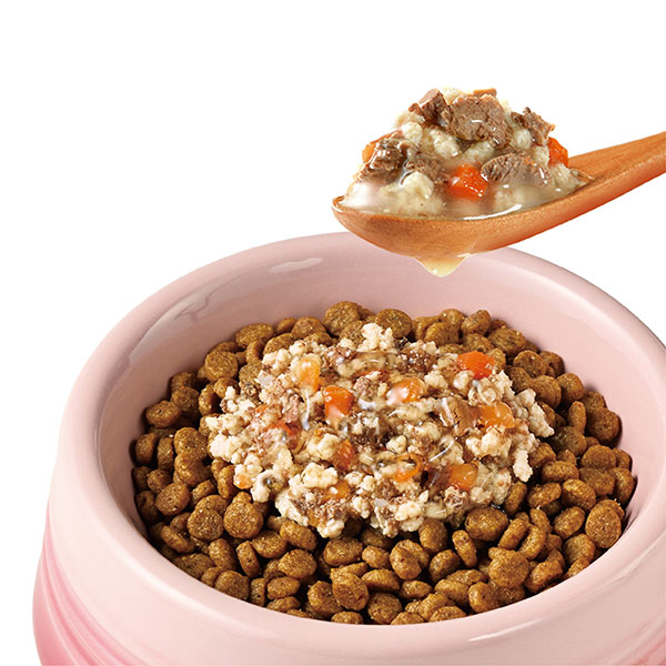 下記の表を目安に、1日に1~2パックを数回に分けて総合栄養食と一緒に与えてください。