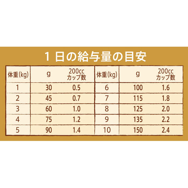 本品は、AAFCO(米国飼料検査官協会)規定の分析試験により、成犬の健康維持に適したバランスの良い総合栄養食であることが証明されています。