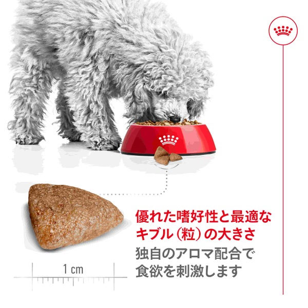 室内で生活する小型犬の、低いエネルギー要求量に合わせたカロリー調整が、理想的な体重の維持をサポートします。
