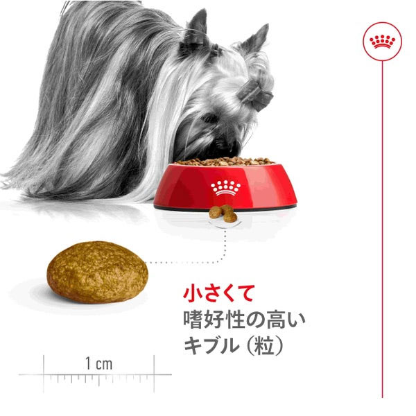 体重4kg未満の超小型犬の特に小さな顎に合わせてキブル(粒)のサイズを最適に調整。さらに独自の製法で嗜好性を高めることにより食欲にムラがある超小型犬の食欲を刺激します。