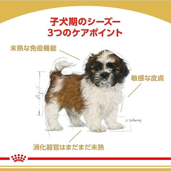 成長期は犬の一生のなかで、極めて重要な期間です。日々新しい発見や出会いを積み重ねるとともに、身体が大きく成長していきます。子犬の免疫機能は、この重要な期間に少しずつ発達していきます。<シーズー 子犬用>は、ビタミンEを含む、独自に配合された抗酸化成分が健康を維持することで、子犬本来の抵抗力を維持します。