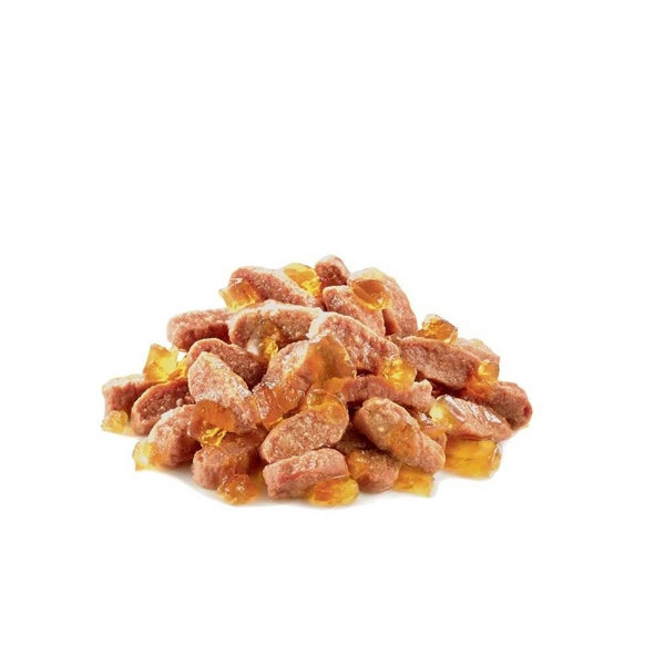 鶏肉、豚肉、小麦タンパク、セルロース、魚油(EPA/DHA源)、加水分解酵母(マンナンオリゴ糖及びβーグルカン源)、調味料(アミノ酸類)、マリーゴールド、酵母、β-カロテン、アミノ酸類(グリシン、タウリン、メチオニン)、増粘安定剤(増粘多糖類)、ミネラル類(Na、P、K、Ca、Cl、Mg、Zn、Fe、Cu、Mn、I)、キレートミネラル(Zn、Cu、Mn)、ビタミン類(コリン、E、C、D3、B1、ナイアシン、B2、パントテン酸カルシウム、B6、葉酸、ビオチン、B12)